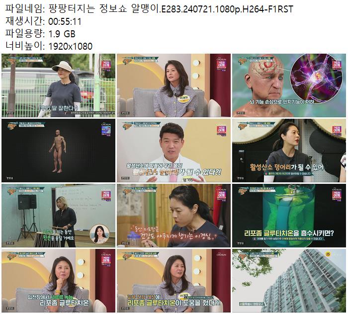 | 팡팡터지는 정보쇼 알맹이.E283.240721.1080p.H264-F1RST.mp4 | 1.9 G | - | 1920x1080 |