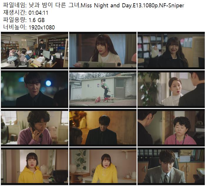 | 낮과 밤이 다른 그녀.Miss Night and Day.E13.1080p.NF-Sniper.mkv | 1.6 G | - | 1920x1080 |