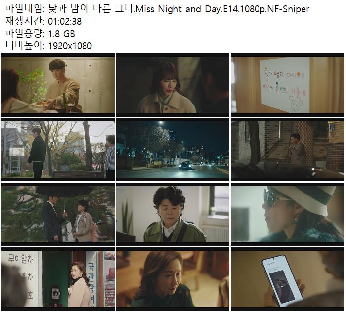| 낮과 밤이 다른 그녀.Miss Night and Day.E14.1080p.NF-Sniper.mkv | 1.8 G | - | 1920x1080 |