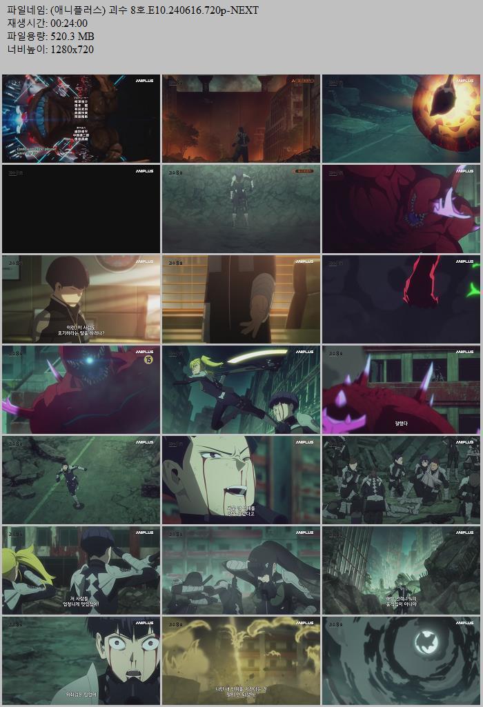 | (애니플러스) 괴수 8호.E10.240616.720p-NEXT.mp4 | 520.3 M | - | 1280x720 |