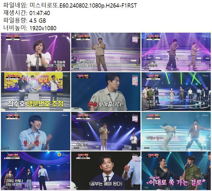 | 미스터로또.E60.240802.1080p.H264-F1RST.mp4 | 4.5 G | - | 1920x1080 |
