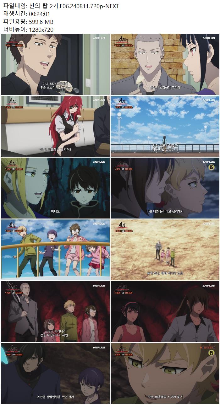 | 신의 탑 2기.E06.240811.720p-NEXT.mp4 | 599.6 M | - | 1280x720 |