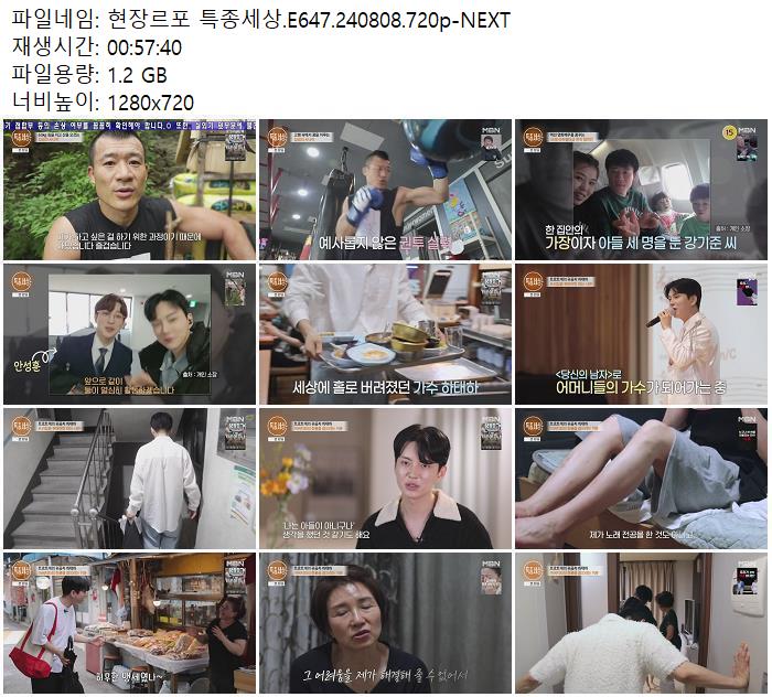 | 현장르포 특종세상.E647.240808.720p-NEXT.mp4 | 1.2 G | - | 1280x720 |