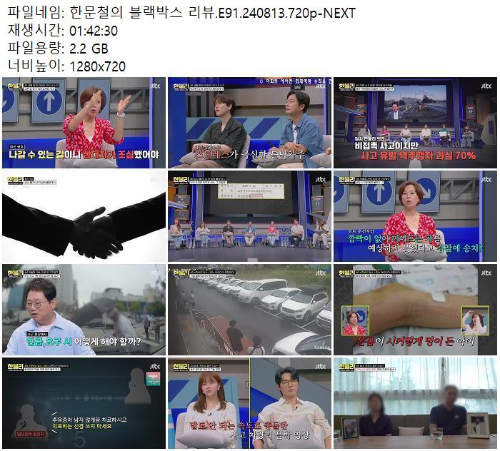 | 한문철의 블랙박스 리뷰.E91.240813.720p-NEXT.mp4 | 2.2 G | - | 1280x720 |